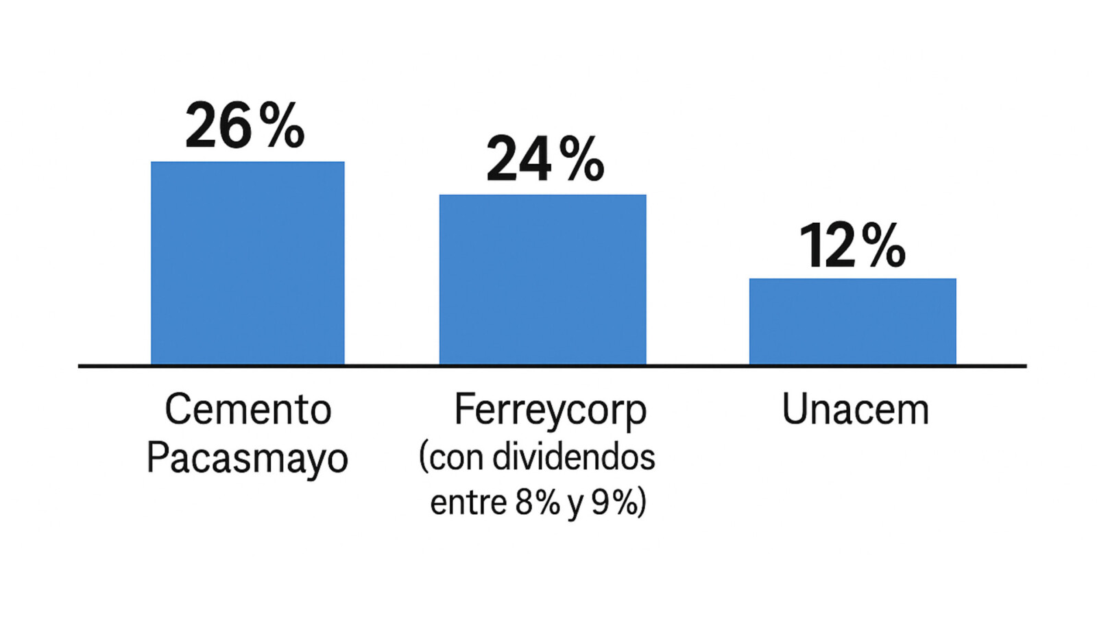 En construcción, Cemento Pascasmayo (26%), Ferreycorp (24%, con dividendos entre 8% y 9%) y Unacem (12%) destacan por su desempeño.