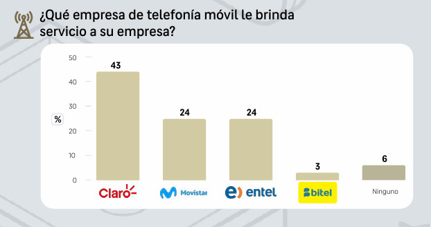 En el ámbito corporativo, Claro también encabeza la provisión de telefonía móvil empresarial con 43 %, mientras que Movistar y Entel comparten el segundo lugar con 24 % cada una. Un 6 % de los ejecutivos indicó no contar con este servicio para su empresa.