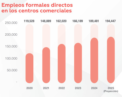 El impacto en el empleo también es significativo: los centros comerciales generan más de 400 mil puestos formales directos e indirectos, lo que representa el 11% del empleo formal privado en el país.
