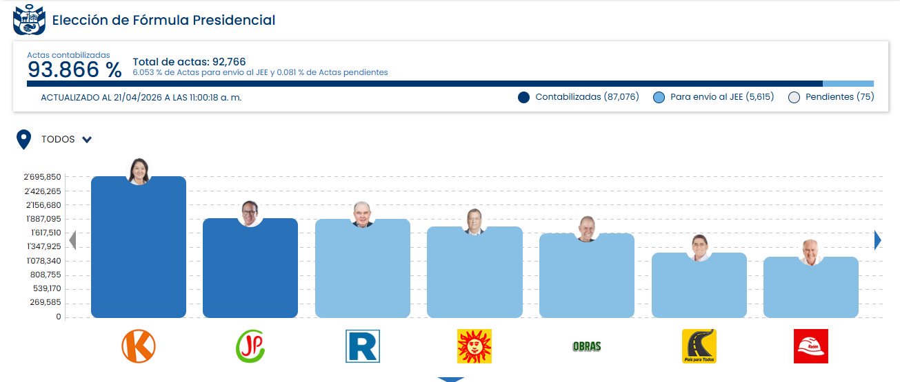 Días antes, se reportó que un total de 27,227 actas fueron derivadas a los Jurados Electorales Especiales para su revisión, lo que representa aproximadamente el 13% del total de mesas instaladas. De estas, 5,343 actas corresponden específicamente a la elección presidencial.
