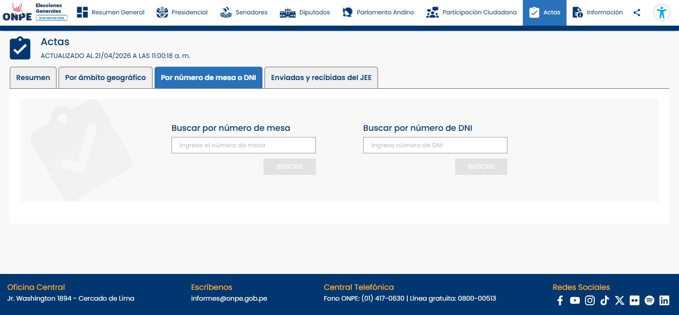 Cualquier ciudadano puede verificar esta información por sí mismo a través del portal oficial de la ONPE. Para ello, debe seguir estos pasos: