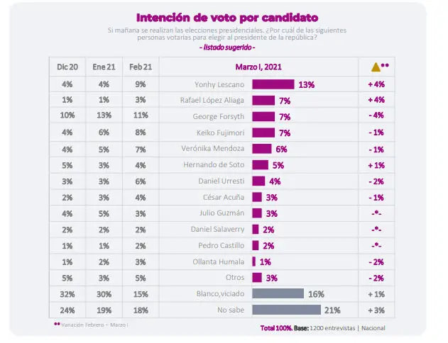 Encuesta Presidencial 2021: Intención de voto por candidatos