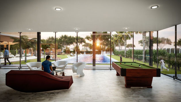 Habrá una piscina grande para adultos y niños. También una cancha de fútbol7, dos canchas de frontón, un gimnasio panorámico en el segundo nivel con vista a la cancha de fútbol y la piscina. También tendremos zona de parrilla y un restaurante.