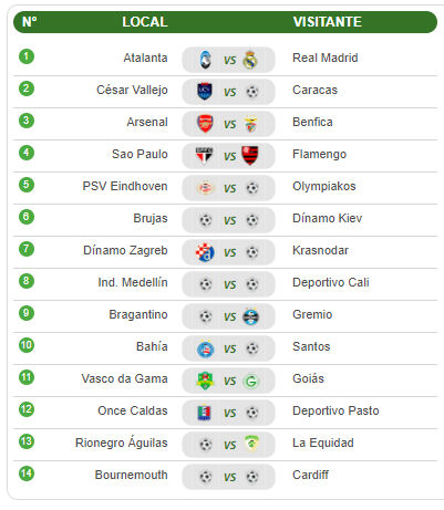 El costo de la jugada es dos soles. Para cada partido, tienes que elegir uno de los tres resultados posibles: gana local, empate, gana visita.
