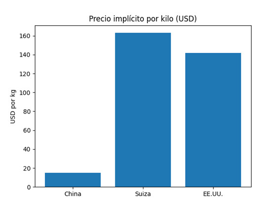 - Suiza (2024): alrededor de US$ 163/kg.