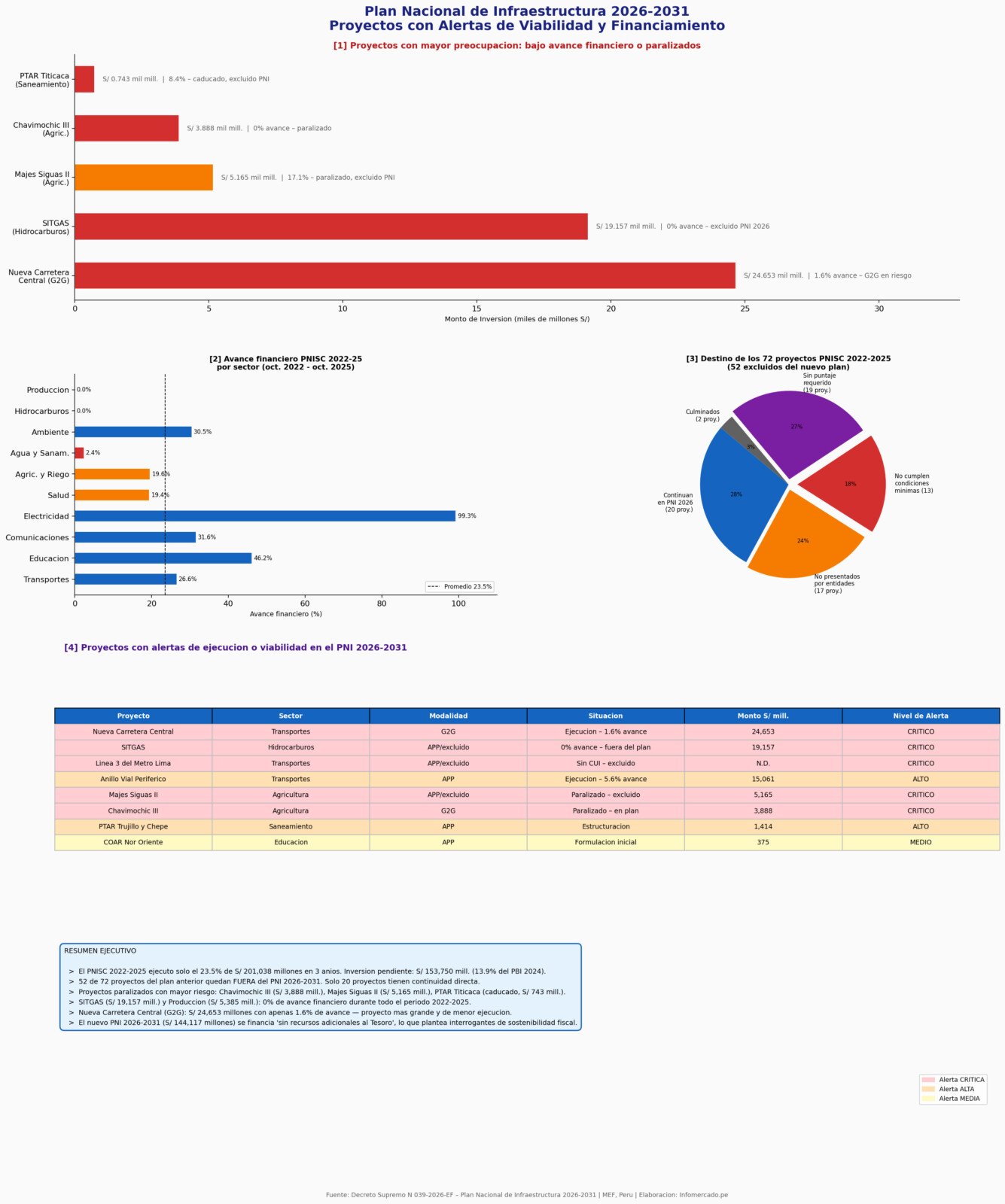 - Hidrocarburos (1 proyecto – SITGAS): 0% de avance sobre S/ 19,157 millones.