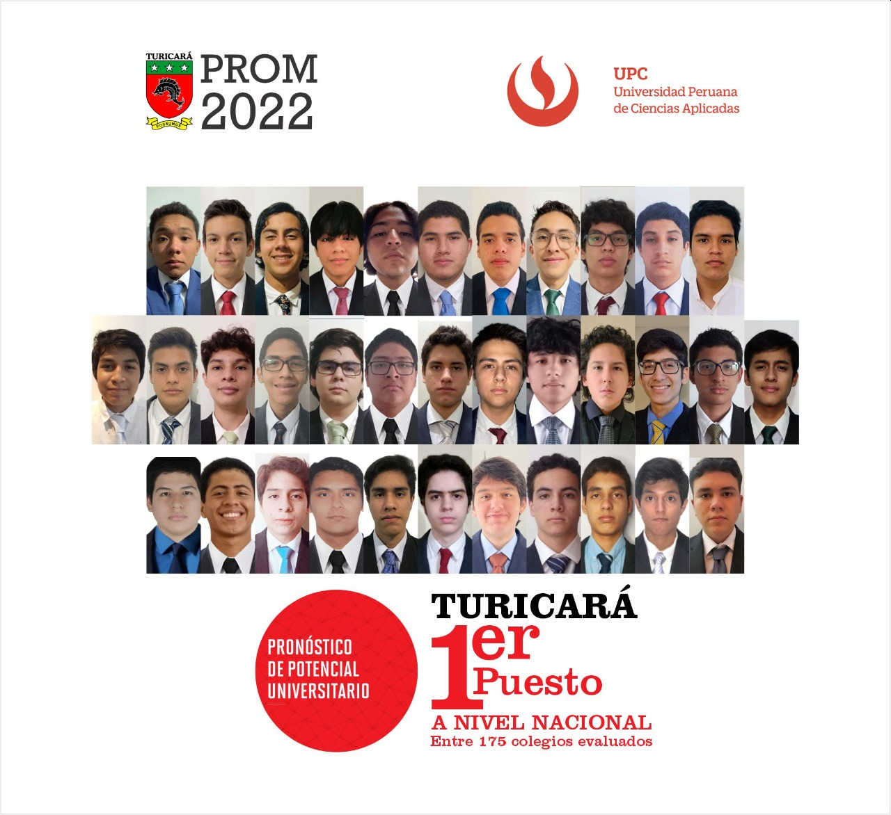 La Promoción 2022 del colegio Turicará de Piura obtuvo el primer puesto en la Prueba Nacional de Pronóstico Potencial Universitario (PPU) organizado por la Universidad Peruana de Ciencias Aplicadas. De esta forma, superó a 175 colegios de todo el país, representados por 5,318 alumnos de Áncash, Arequipa, Cajamarca, Cusco, Ica, Junín, Lambayeque, La Libertad, Lima, Piura y Tacna.