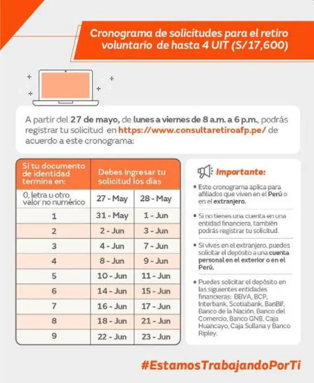 - Si tu DNI termina en 1, podrás solicitar el retiro el 31 de mayo o 1 de junio