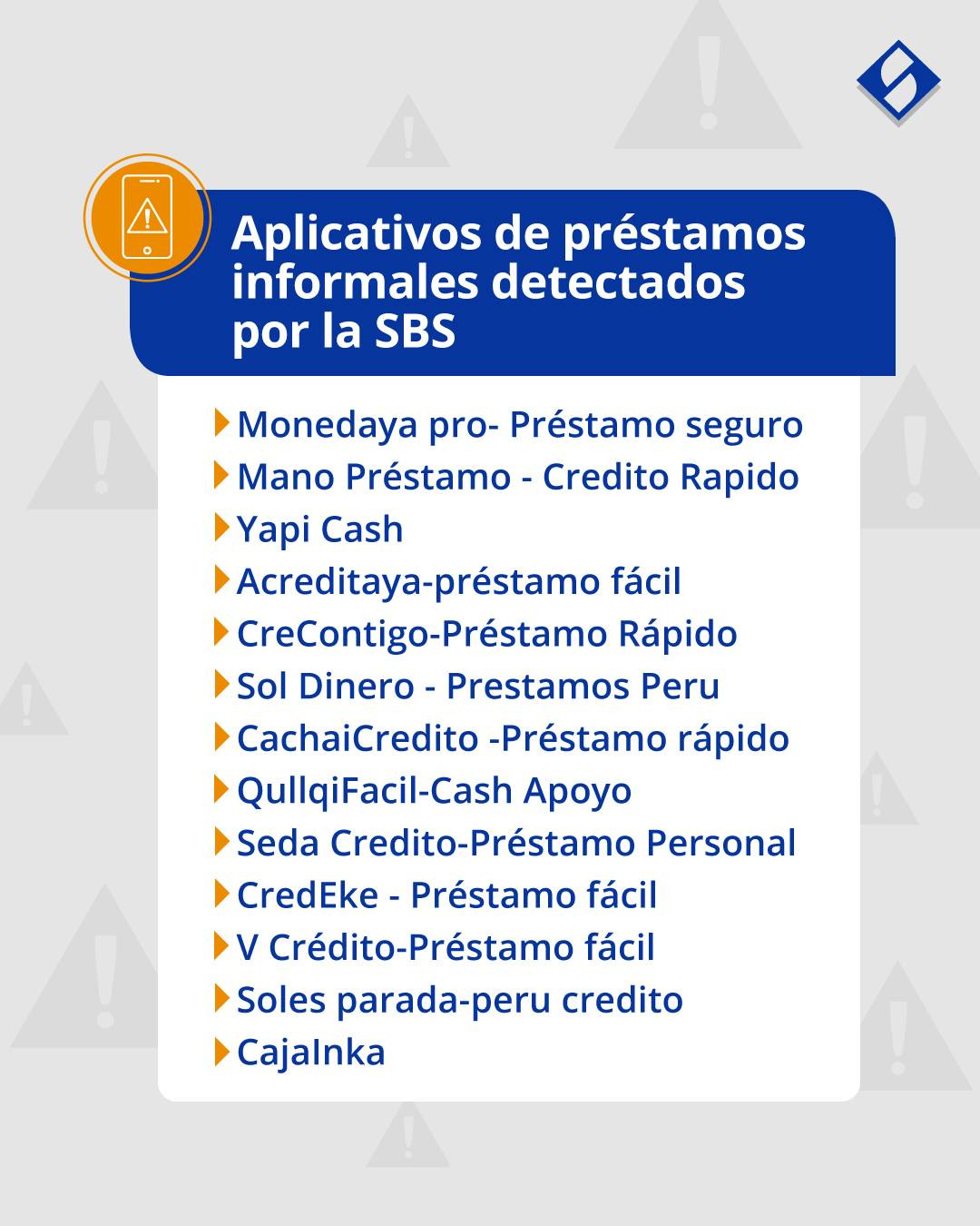 La Superintendencia de Banca, Seguros y AFP identificó diversos aplicativos que operan ofreciendo préstamos de dinero. Entre ellos se encuentran: