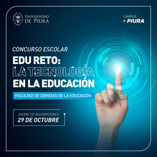 La Universidad de Piura presenta la primera edición de su concurso Edu Reto 2021: la tecnología en la educación, dirigido a escolares de 4to y 5to de secundaria de los colegios nacionales y privados del país. Este concurso está organizado por la Facultad de Ciencias de la Educación y la Gerencia Comercial y de Marketing de la misma universidad.