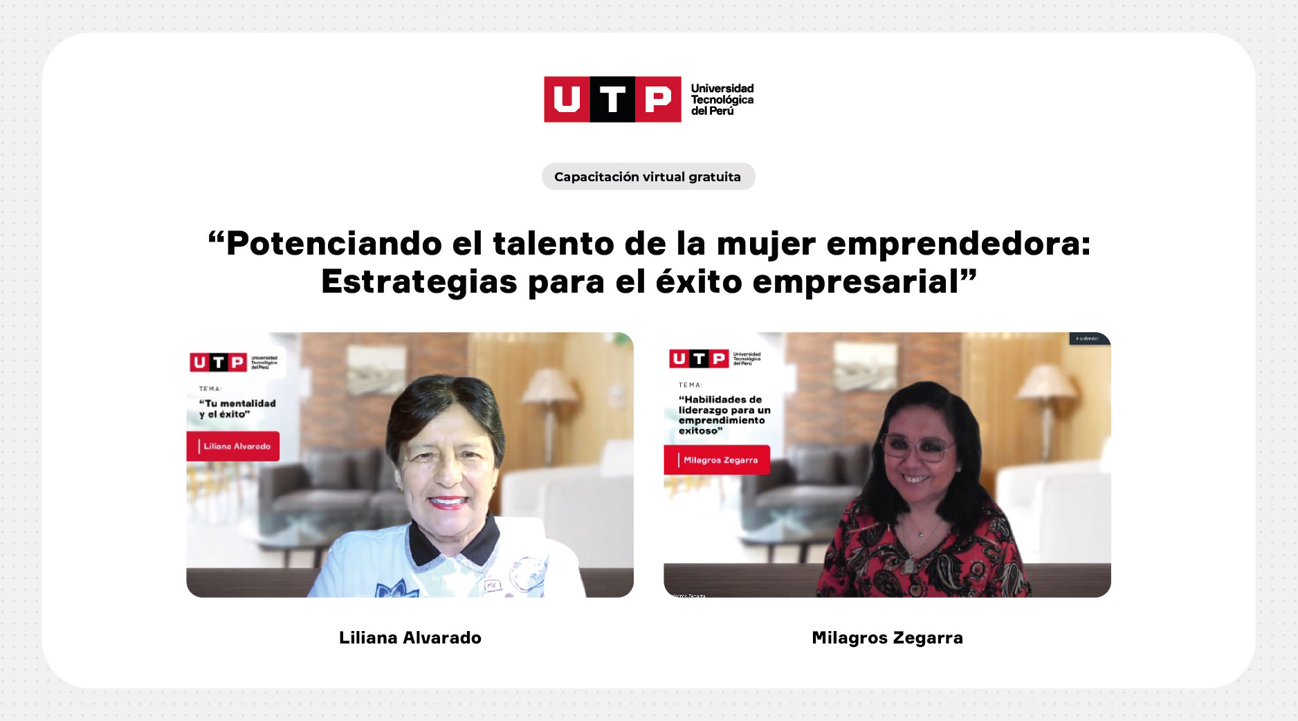 La Universidad Tecnológica del Perú (UTP) organizó la capacitación virtual gratuita “Potenciando el talento de la mujer emprendedora: estrategias para el éxito empresarial” con la participación de reconocidas profesionales con experiencia internacional.